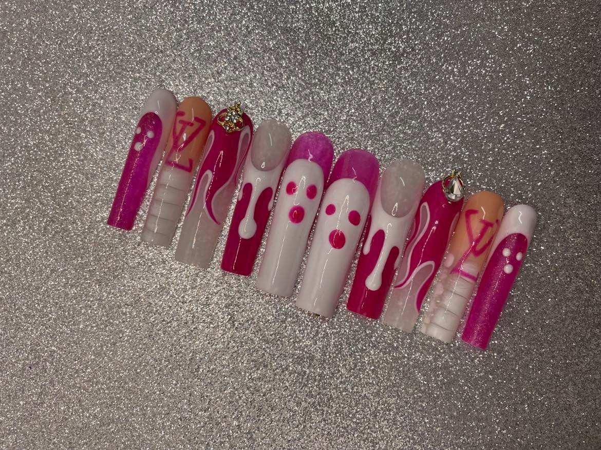 - Each set contains 10 false nails (see attached size chart image and put your nail sizes in the note section for each nail: Thumb, Index, Middle, Ring & Pinkie)